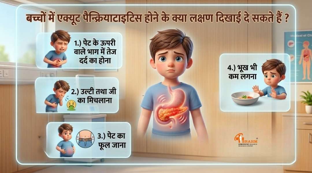 १)बच्चों में एक्यूट पैन्क्रियाटाइटिस का क्या इलाज है? एक्यूट पैन्क्रियाटाइटिस ऐसी बीमारी है, जिस में अग्न्याशय में अचानक से सूजन हो जाती है। शरीर में अग्न्याशय पेट के अंदर स्थित महत्वपूर्ण अंग है, जो पाचन एंजाइम तथा इंसुलिन जैसे हार्मोन को बनाता है।  - जब सूजन हो जाती है, तो बच्चे को तेज पेट में दर्द, उल्टी तथा बुखार जैसी समस्याएँ लगती हैं। बच्चों में बीमारी कम पाई जाती है, जब होती है तो सही समय पर इलाज जरूरी होता है।  २) बच्चों में एक्यूट पैन्क्रियाटाइटिस के क्या कारण है? बच्चों में एक्यूट पैन्क्रियाटाइटिस के कई कारणों से हो सकता है, जैसे की,  1.) पेट में चोट लग जाना  2.) कुछ दवा का साइड इफेक्ट  3.) वायरस या तो,संक्रमण 4). पित्त के थैली के प्रॉब्लम  5.) जन्मजात से ही समस्या  ३) बच्चों में एक्यूट पैन्क्रियाटाइटिस होने के क्या लक्षण दिखाई दे सकते हैं? एक्यूट पैन्क्रियाटाइटिस होने निम्न लक्षण दिखाई दे सकते हैं,  - पेट के ऊपरी वाले भाग में तेज दर्द का होना  - उल्टी तथा जी का मिचलाना - पेट का फूल जाना - भूख भी कम लगना  ४) एक्यूट पैन्क्रियाटाइटिस के जांच कैसे की जाती है? डॉ. बीमारी का पता के लिए कुछ जांच करवाते हैं,  1. Blood Test :: अमाइलेज तथा लाइपेज एंजाइम के जांच  2. Ultrasound :: अग्न्याशय के सूजन को देखने के लिए.  3. CT Scan , MRI.  इन जांच से डॉ. बीमारी के गंभीरता का पता लगाते हैं. ५) बच्चों में एक्यूट पैन्क्रियाटाइटिस का सही इलाज क्या है? #1. अस्पताल में एडमिट- ज्यादातर बच्चों के इलाज अस्पताल में एडमिट करना पड़ता है, ताकि डॉ. स्थिति पर लगातार नजर रख सकें।  #2. दर्द का इलाज - एक्यूट पैन्क्रियाटाइटिस पेट में दर्द बहुत तेज होता है। डॉ.दर्द को कम करने के लिए दवा देते हैं। #3. पानी की कमी को दूर करना  - बीमारी में उल्टी तथा भूख कम होने से शरीर में पानी के कमी है। इसलिए बच्चे को IV Fluids दी जाती है। #4.कुछ समय तक खाना नहीं दिया जाता है।  # 5. बच्चा लंबे समय तक खाना को नहीं खा रहा है तो ,डॉ. ट्यूब के माध्यम से पोषण दे सकते हैं। # 6. संक्रमण होने पर एंटीबायोटिक दवा को देते हैं। ६) एक्यूट पैन्क्रियाटाइटिस के संभावित जटिलता क्या है? अगर समय पर इलाज नहीं किया तो कुछ जटिलताएँ होती हैं, - पाचन के समस्या का होना  - मधुमेह का खतरा  - बार-बार पैन्क्रियाटाइटिस का होना सही इलाज तथा देखभाल से बच्चे पूरी तरह ठीक हो जाते हैं।